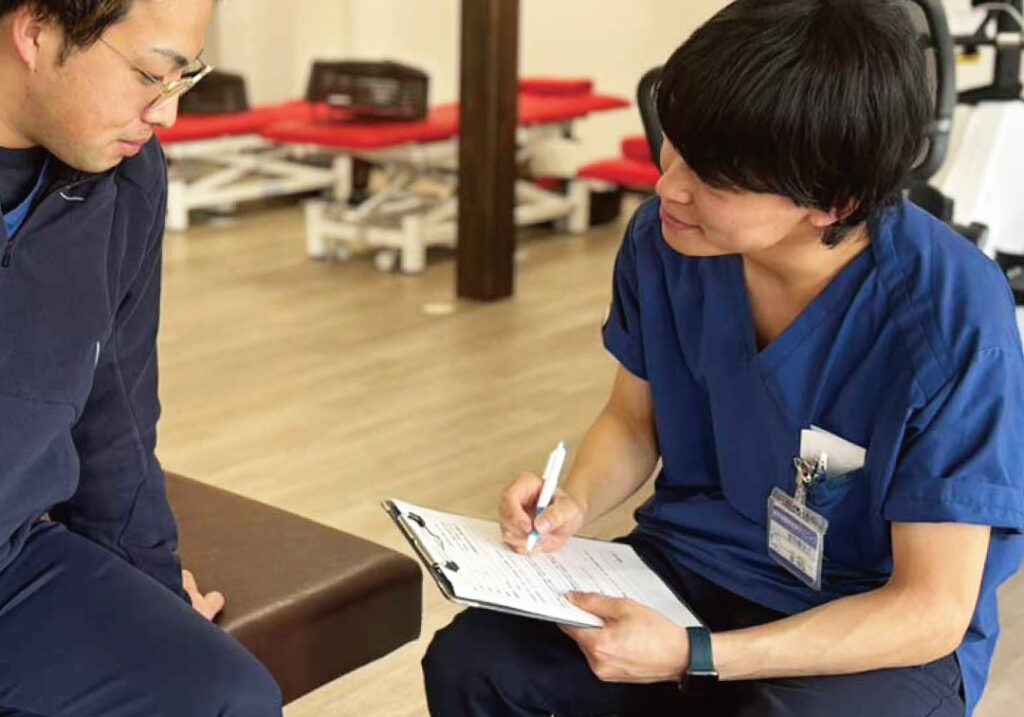 ハビリテーション業務が中心となります。整形外科領域の患者さんに対して、筋力や可動域を高める運動療法、日常生活動作の練習、さらに自宅での過ごし方や健康維持についてのアドバイスなど、個々の状態に合わせた支援を行います。